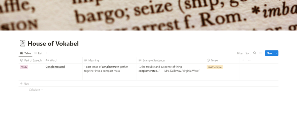 Store all of your vocabulary words in one place, with colour coded Parts of Speech and Tenses.
